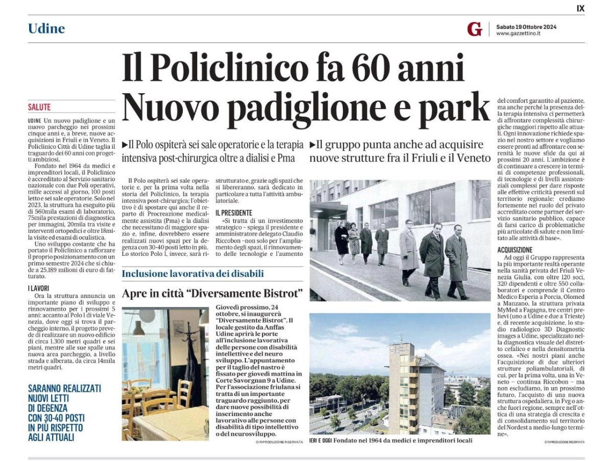Il Policlinico fa 60 anni. Nuovo padiglione e park