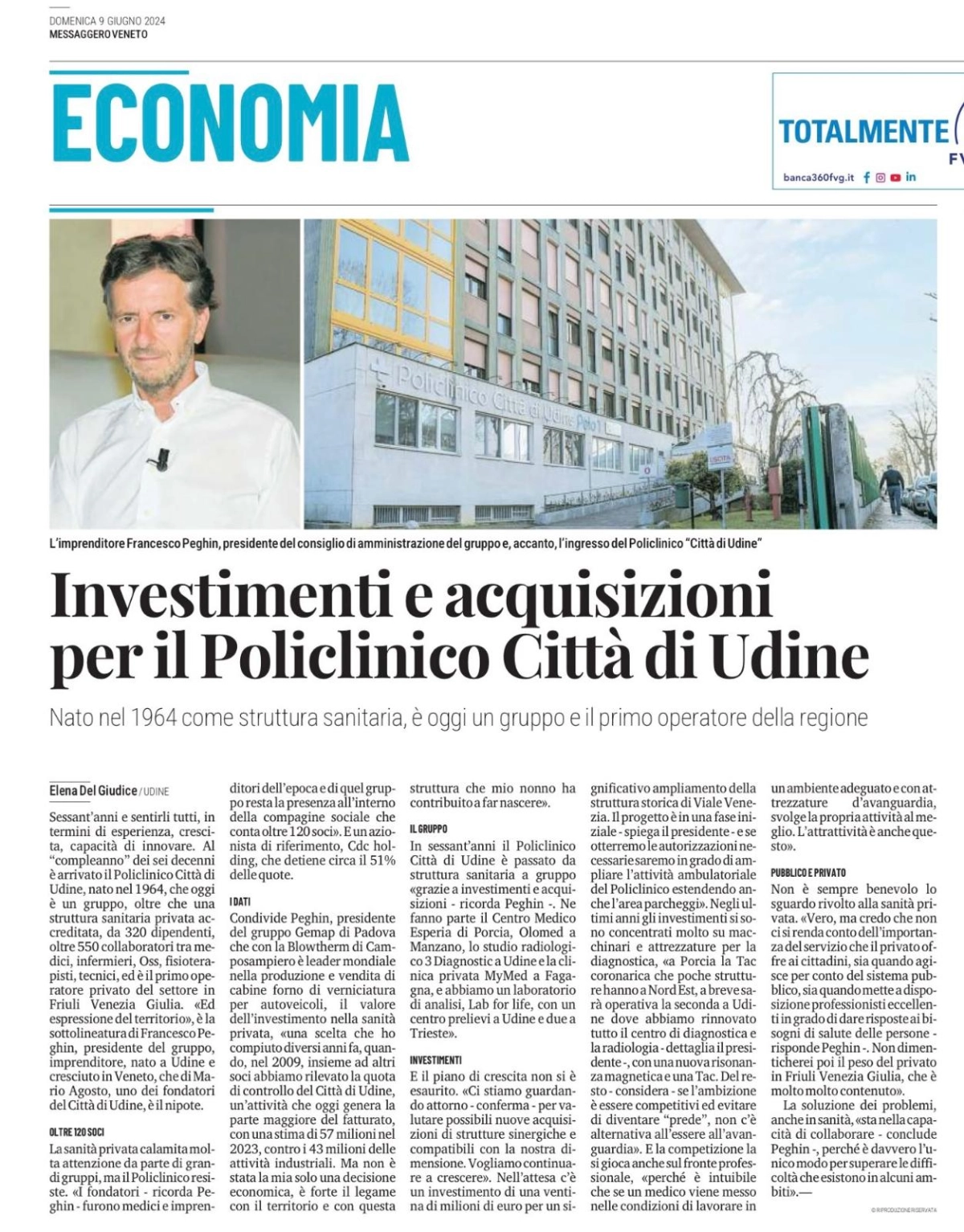 Investimenti e acquisizioni per il Policlinico Città di Udine